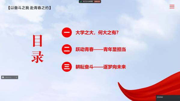 理想信念教育。马克思主义学院“四联系”老师任甜甜为全体新生上“开学第一课”,她从什么是大学、新时代青年的使命与担当、向未来共远航三个方面,带领同学们共同回望学校历史,帮助新生了解学校办学历史、办学特色、办学理念,勉励同学们树立远大理想,不断提升自我,在青春的赛道上跑出最佳成绩。