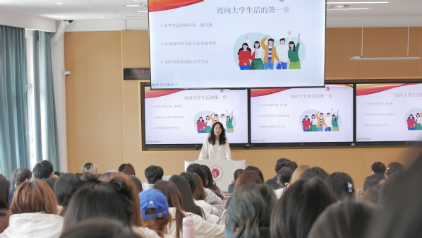 随后,齐乐结合大学新生的心理特点,针对大学新生常见的心理适应问题,从“大学有何变化”“如何认知变化”“怎样适应变化”三个方面进行分享,以大学生常见的心理问题为切入点,以真实案例讲解心理疏导知识,教授人际沟通技巧,为同学们答疑解惑并介绍情绪调适的方法,帮助学生学会合理宣泄情绪,找到适合自己的心理适应方式,鼓励新生勇敢应对新挑战,以更加平稳、乐观的心态适应大学生活。