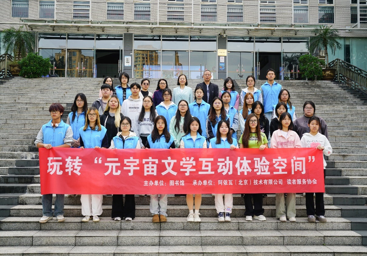 为大力营造爱读书、读好书、善读书的良好氛围,引导读者提高阅读兴趣、养成阅读习惯、提高阅读能力,图书馆联合阿依瓦(北京)技术有限公司于10月22日、10月29日举办了2场读者玩转“元宇宙文学互动体验空间”活动。