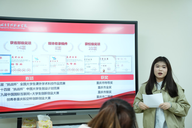 蒋红霞同学则围绕大学生创新创业比赛,分享了她的竞赛经验和团队建设心得。她指出,创新创业比赛是检验学生创新和实践能力的有效途径,而团队协作和合理分工是成功的关键。她还详细讲解了比赛规则、参赛技巧及团队建设的重点,为同学们提供了宝贵的参赛指南。