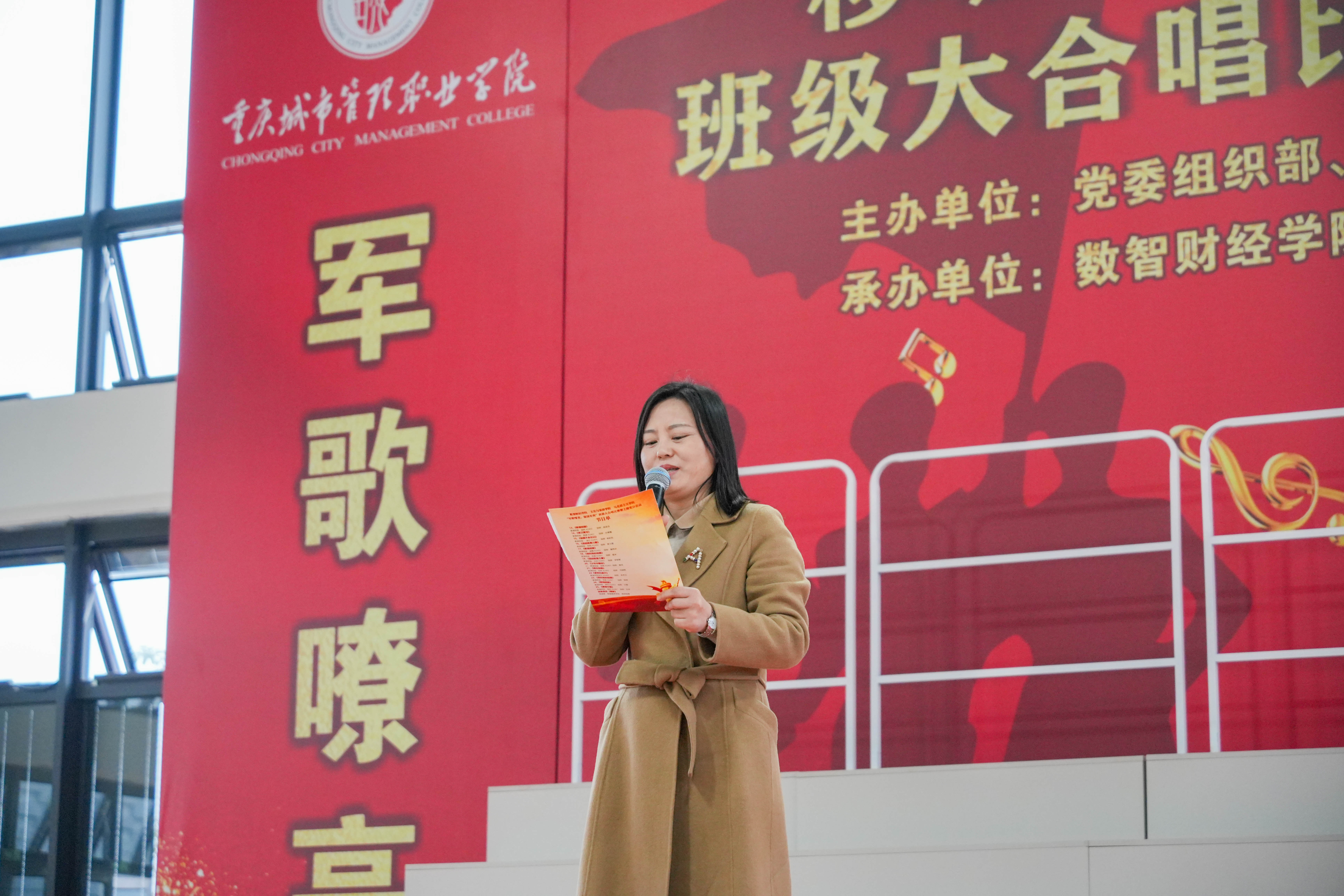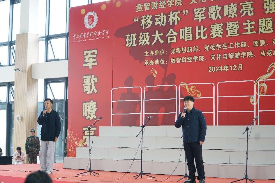 为深入学习贯彻习近平新时代中国特色社会主义思想,培养德智体美劳全面发展的社会主义建设者和接班人,展现当代大学生积极向上的精神风貌,我校荣昌校区积极响应新时代党的建设总要求,以社会主义核心价值观为引领,数智财经学院、文化与旅游学院、马克思主义学院于12月3日在荣昌校区网球馆举行了“军歌嘹亮 强国有我”班级大合唱比赛暨主题党日活动。荣昌校区管委会副主任吴齐、学生工作事务部部长陶军屹、党群工作事务部部长江茂森、二级学院管理办公室负责人、辅导员以及三个学院900多名学生参加。