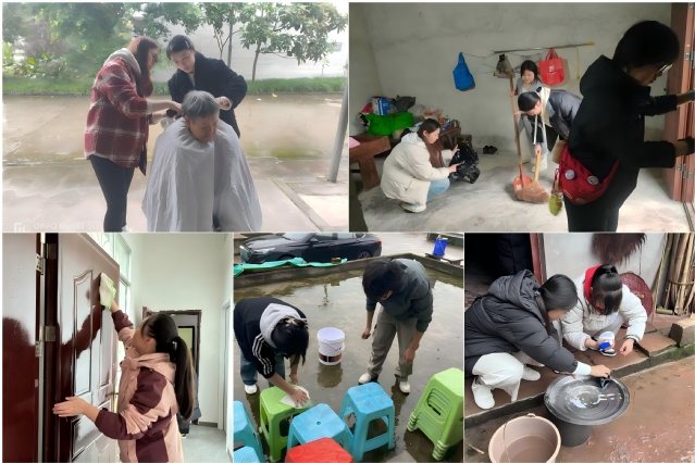 志愿者分组落实荣昌区团委工作部署,有的学生负责“居家清洁暖心行”,全面清扫老人家中灰尘、垃圾,擦拭家具,分类归置衣物,让老人起居环境焕然一新;同步清理房前屋后杂物杂草,改善周边卫生状况。有的学生负责“温情陪伴不孤单”,陪老人拉家常、忆往昔,倾听心声诉求,丰富精神文化生活。有的同学负责“爱心义剪焕新颜”,为行动不便的老人提供上门理发服务,理发时耐心沟通,舒缓老人紧张情绪,给予安慰陪伴。