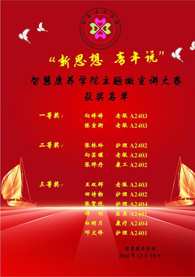 本次比赛的成功举办丰富了同学们的课余生活,提供了学生自我展示的舞台,更是一次新思想的学习与传播之旅。为深入学习贯彻习近平新时代中国特色社会主义思想,进一步推动我院学生加强理论学习,筑牢信仰之基、补足精神之钙、把稳思想之舵创造了有利条件和场所。让新思想在青年学生中落地生根,激发广大青年为智慧康养事业发展贡献力量的热情与决心。学院也将以此次活动为契机,进一步推动新思想学习的常态化、制度化。