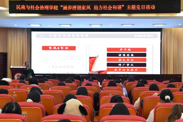 为深入学习贯彻习近平家风家教重要论述,弘扬中华民族优秀传统文化,加强党员及青年大学生的家风建设,12月9日,民政与社会治理学院在行政楼103会议室举办“涵养清朗家风,助力社会和谐”主题党日活动。