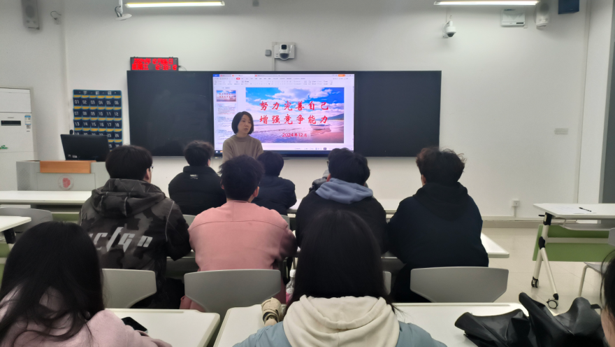 胡瑾雯老师从“世界怎么了?”和“我该怎么办?”两个角度,帮助学生正确认识当前世界局势及国内社会热点,帮助学生分析就业形势,解读就业政策,激发学生思考未来的就业方向,并从专业学习、技能锤炼、思想培养、品质提升等方面传授经验,鼓励同学们珍惜时光,切实提高自己的核心竞争力,把握时代发展所赋予当代青年人的机遇,勇敢面对挑战,在新时代新征程上书写属于自己的奋斗故事。