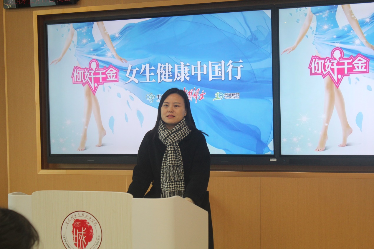 讲座正式开始前,重庆千金药业公司舒宝江经理代表公司向学校颁发了“公益爱心专家”和“公益爱心基地”荣誉称号并授牌,肯定了学校在女性健康公益事业上的贡献和成绩。
