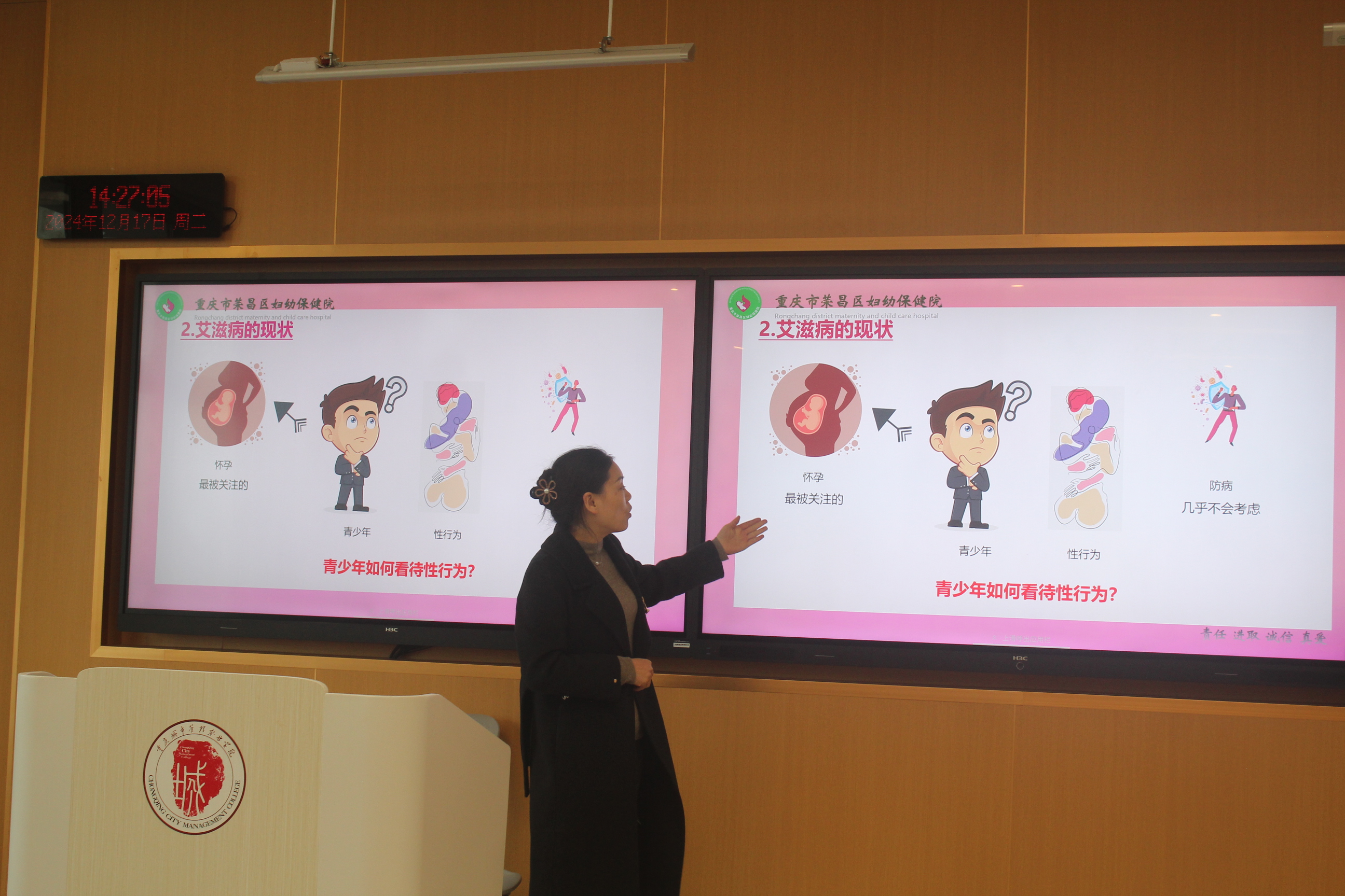 为提升大学生对女性健康问题的关注,增强自我保健意识,并传播科学、正确的健康理念,12月17日,由数智财经学院牵头举办的“女性健康进校园”主题宣讲活动在荣昌校区厚德楼512教室举行。此次活动由数智财经学院牵头组织,并荣幸邀请到荣昌区妇幼保健院妇女保健部副部长、妇外计总支部书记、妇科主任王燕担任主讲嘉宾。荣昌学院党总支书记、管委会学生工作事务部部长陶军屹到场并致辞。数智财经学院副院长黄倩和来自学校2024级的160余名女生参加。