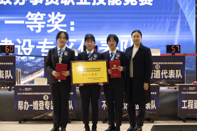 按照《国务院关于进一步优化政务服务提升行政效能推动“高效办成一件事”的指导意见》(国发〔2024〕3号)中关于推进综合服务窗口人员统一配备和职业化发展的有关要求,深入实施行政办事员(政务服务综合窗口办事员)国家职业技能标准,12 月18日,重庆高新区首届行政办事员职业技能竞赛在我校举办。此次竞赛由高新区政务服务中心主办,我校文化与旅游学院承办。竞赛以 “以赛促学强技能,以学促用提效能” 为主题,全区各级政务服务中心共计 15 支队伍、45 名选手参赛。选手经过必答题、抢答题、综合情景模拟题等环节,共决出团体一等奖1项、二等奖2项、三等奖3项,4名综合表现突出的选手荣获 “政务之星” 的荣誉称号。