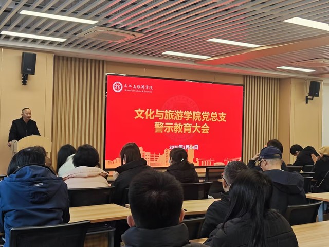 为进一步加强党风廉政建设,增强党员干部的廉洁自律意识,筑牢拒腐防变的思想防线,2月14日,文化与旅游学院党总支召开2025年警示教育大会,学院全体党员教师参加会议。