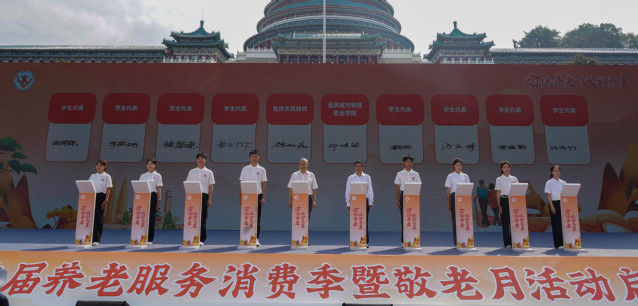 9月28日,重庆市首届养老消费季暨全市敬老月活动启动仪式在重庆人民广场隆重举行。仪式上,重庆市民政局副局长徐松强和我校校长邓明国以及8名2025级智慧健康养老服务与管理专业公费培养生,共同完成全国首届智慧健康养老服务与管理专业公费培养项目签约。此次签约旨在进一步深化政企校协同育人机制,明确公费生毕业后投身重庆养老服务领域的定向培养目标,为我市养老服务领域注入了“人才保障”的强劲动力,也为全市养老服务业高质量发展专业人才铺平了道路。