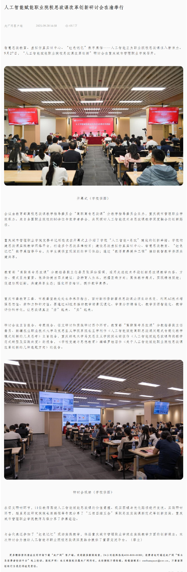 作者:马克思主义学院审核发布:重庆城市管理职业学院发布者:党委宣传网工部发布时间:2025-09-28浏览次数:10