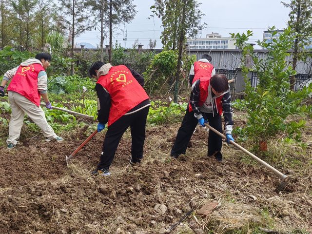 10月,开荒除草师生团队,走进田间地头,分工协作,挥锹铲土, 你一锄、我一铲,相互协作,在田垄间辛勤耕耘,将积累的杂草与藤蔓清理干净,并在老师的示范指导下, 深翻20厘米的黄土里,共同将土地翻松,并为后续的种植工作做好准备。11月,育苗种植小组再次深入田间地头,再次翻土、平地, 蹲在田垄边,亲手种下一颗颗的菜苗,从“翻土组”“撒种组”“浇水组”,精准地将种子撒在划定的区域。虽然裤腿沾满了泥泞,但是同学们脸上洋溢着劳动的喜悦,小组长杜峻州表示,他们将定期开展锄草、浇水等实践活动,精心养护一颗颗的菜苗,并保证经过大家共同努力,学期期末一定能够大丰收。此次劳动实践活动给予同学们亲近自然、触摸土地的宝贵体验,通过亲自参与除草、翻土等农事劳动,同学们更加深切地感受“一分耕耘,一分收获”的劳动艰辛。