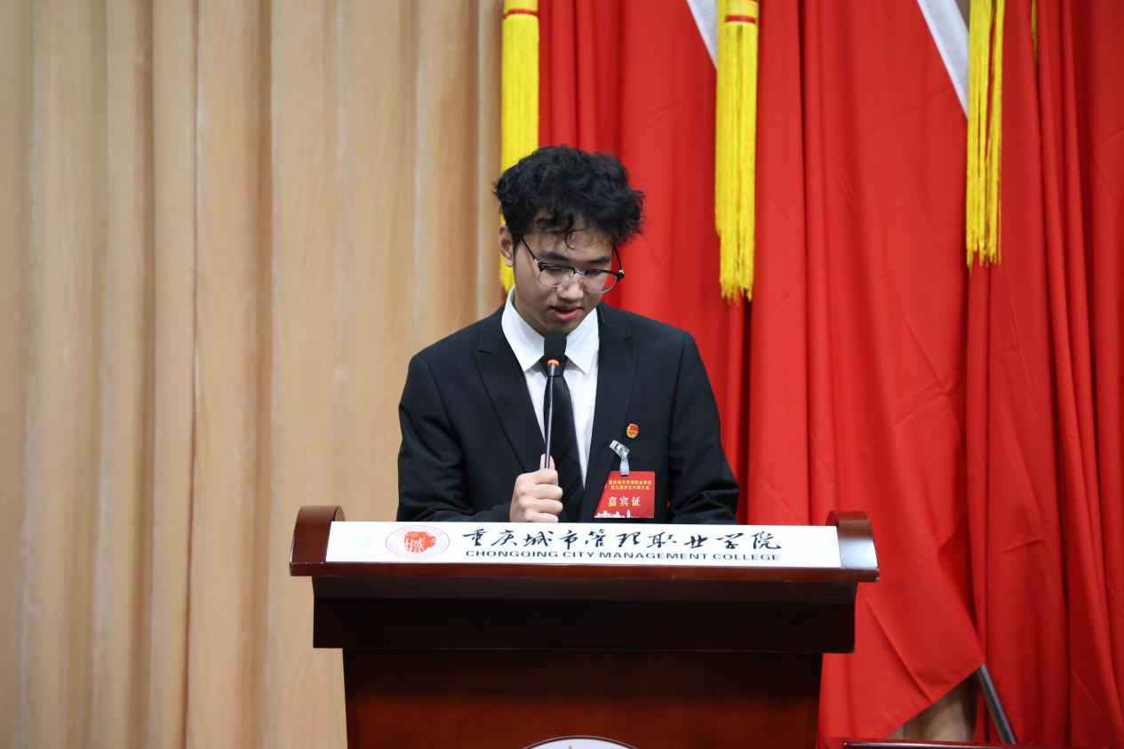 第九届学生代表大会在庄严的国歌声中正式开幕。市学联驻会执行主席张世超宣读了重庆市学生联合会《关于同意召开重庆城市管理职业学院第九届学生代表大会的批复》。在大会上,校团委书记王婧发表了致辞,肯定上一届学生会工作成效,号召新一届学生会聚焦政治引领、主责主业与改革创新,团结带领全校青年学生为学校建设高水平职业大学、为强国建设和民族复兴伟业贡献青春力量。