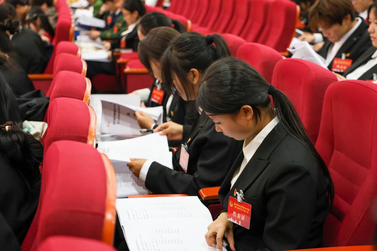 随后,蒋艾玲同学代表第二十届学生会作工作报告,总结思想引领、改革建设等工作成效,分析现存挑战,明确未来将建设学习型、服务型、发展型学生会,团结同学助力学校高质量发展。