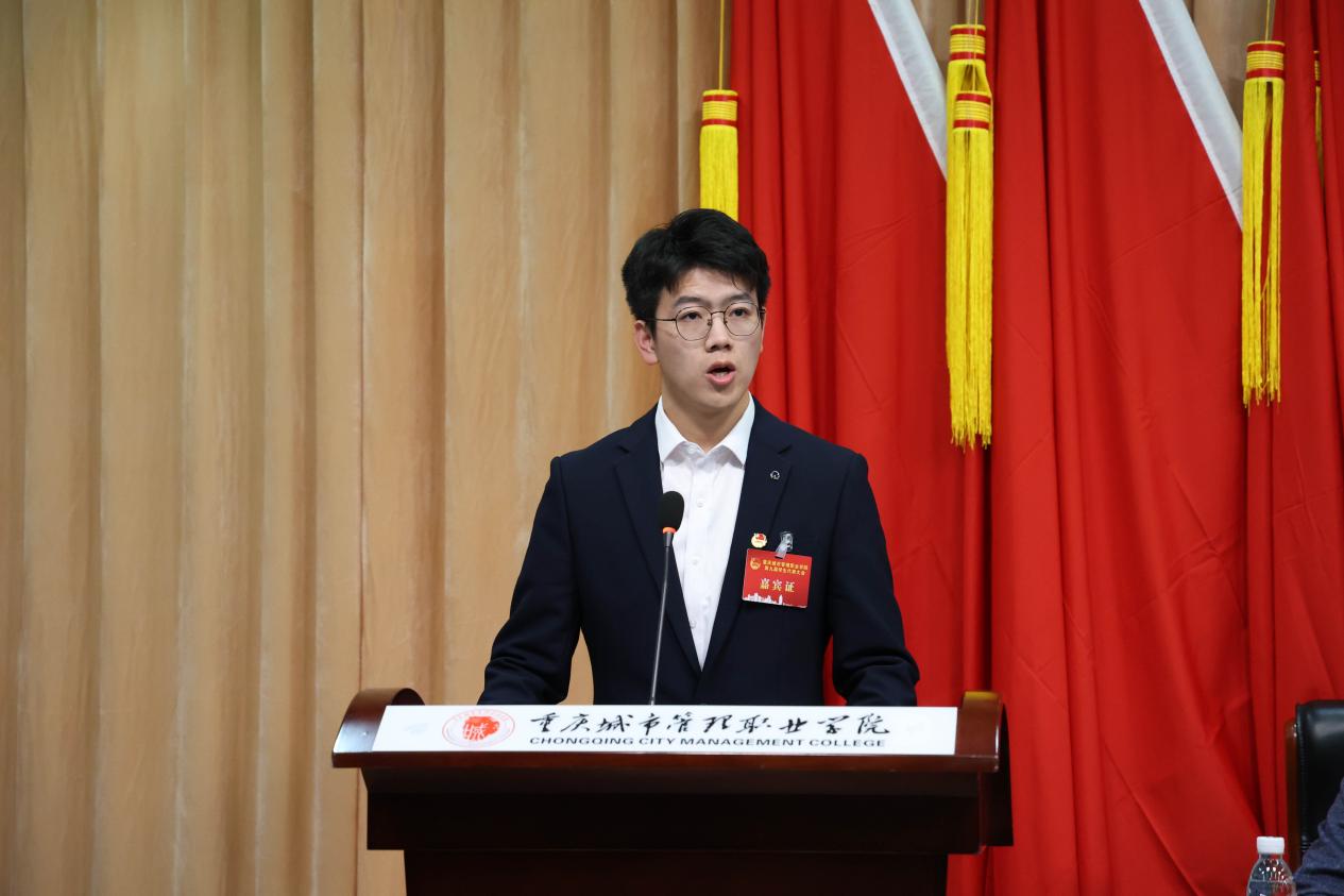 闭幕式后,会议选举产生的新一届学生会主席团成员和第九次学代会常任代表,召开了重庆城市管理职业学院第二十一届学生委员会第一次全体会议。团委书记王婧在总结讲话中提出:校院两级学生代表要于工作中各展所长、恪尽职守,凝聚起紧密协作的强大合力,同心同行助力同学成长成才。