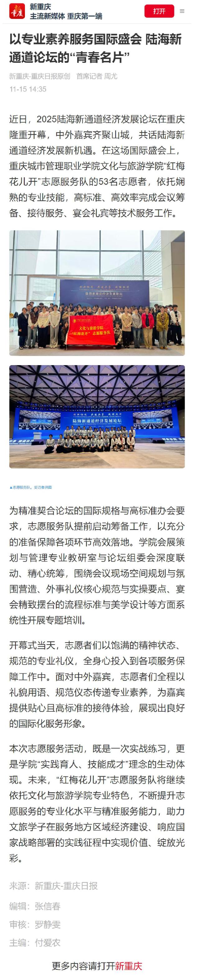 作者:文化与旅游学院审核发布:重庆城市管理职业学院发布者:党委宣传网工部发布时间:2025-11-17浏览次数:10