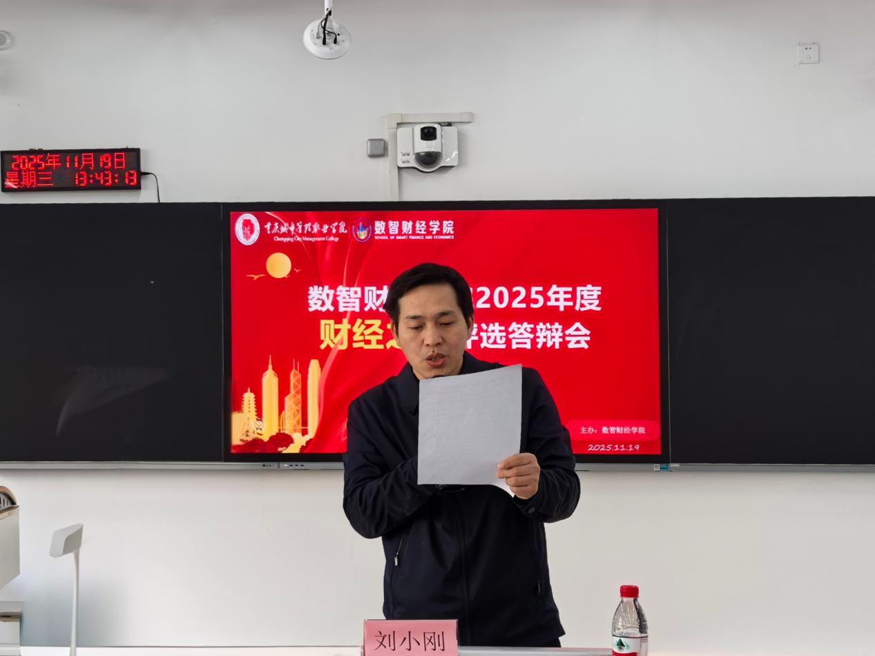 为全面落实立德树人根本任务,深入践行社会主义核心价值观,充分发挥先进典型的示范引领作用,展示学院学子笃学力行、奋发向上的精神风貌,11月18日,数智财经学院成功举办了2025年度“财经之星”评选活动。学院党总支副书记刘小刚、专职组织员杨作亚、学生事务办公室主任谭杰倪以及辅导员老师出席并担任评委。