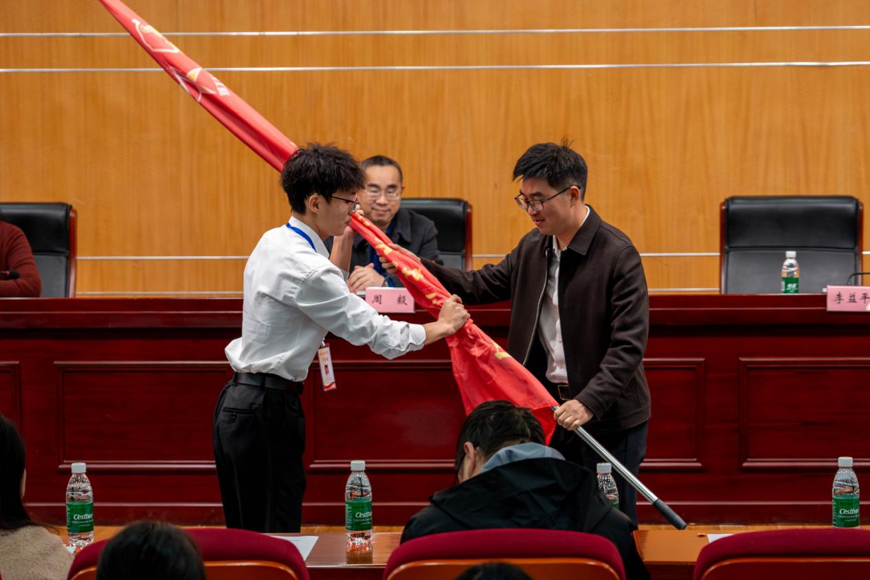 张媛艺为学员代表配发学员证,学员正式开启青马工程学习征程。学员代表秦爽同学发言,她表示将倍加珍惜本次培训机会,在理论学习中坚定信仰,在实践锻炼中锤炼本领,努力成长为合格的青年马克思主义者,以实际行动践行青春誓言。随后,李益平为2025年“青马工程”大学生骨干培训班授旗。