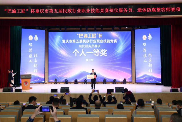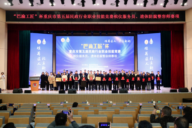 为搭建殡葬行业人才交流平台,推动领域核心职业技能提升,11月19日,“巴渝工匠”杯重庆市第五届民政行业职业技能竞赛殡葬赛项决赛在我校圆满收官。本次为期3天的赛事由重庆市民政局、重庆市人力资源和社会保障局联合主办,重庆市殡葬事业管理中心承办,我校作为实施单位全程保障赛事顺利开展,并荣获“特殊贡献奖”。