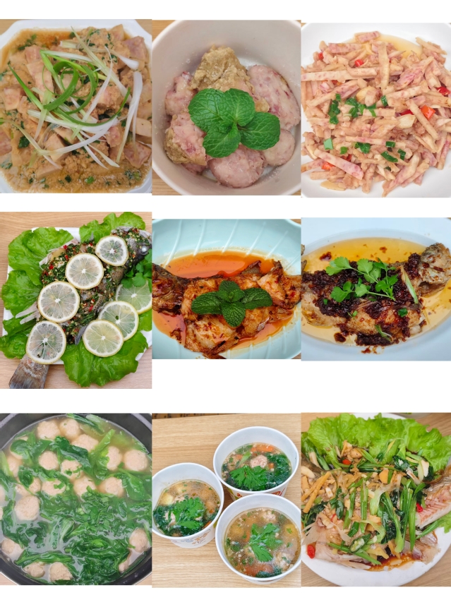 活动将选手分为四支队伍:中国组、老挝组、融合1组、融合2组。四支参赛队伍各展所长,将中老饮食文化的独特魅力展现得淋漓尽致。中国组以经典红烧鲈鱼为创作方向,精心把控火候与调味,并巧妙用上学院劳动实践基地自产的新鲜薄荷,让菜品在醇厚鲜香中增添了清爽口感,凸显了“耕食结合”。老挝组则带来具有本土特色的柠檬汁凉拌鲈鱼,将新鲜柠檬的酸甜、小米辣的鲜辣与鲈鱼的鲜嫩完美融合,酸辣开胃的风味让现场师生眼前一亮,展现了东南亚饮食的鲜明特色。两支融合创新组打破传统烹饪思维与地域界限,围绕学院劳动教育基地采摘的香芋这一食材展开创意比拼。融合1组将香芋蒸熟后捣制成细腻芋泥,包裹馅料后油炸定型,加入水、青柠煮出清香,调入适量鱼露与少许棕榈糖平衡咸甜,再搭配清鲜的豌豆尖,做成芋泥丸子豌豆尖汤,外酥里嫩的口感与特色汤底颇具颜值与风味。融合2组大胆尝试跨界融合,将本土常用的咖喱与香芋结合,精心熬制出咖喱香芋,浓郁的咖喱香气与香芋的绵密口感相互交织,独特的风味组合赢得现场阵阵好评。选手们在创作过程中分工协作、相互交流烹饪技巧,既有对各自文化的坚守,更有对多元风味的探索,彰显了“融合绽放新味”的主题。