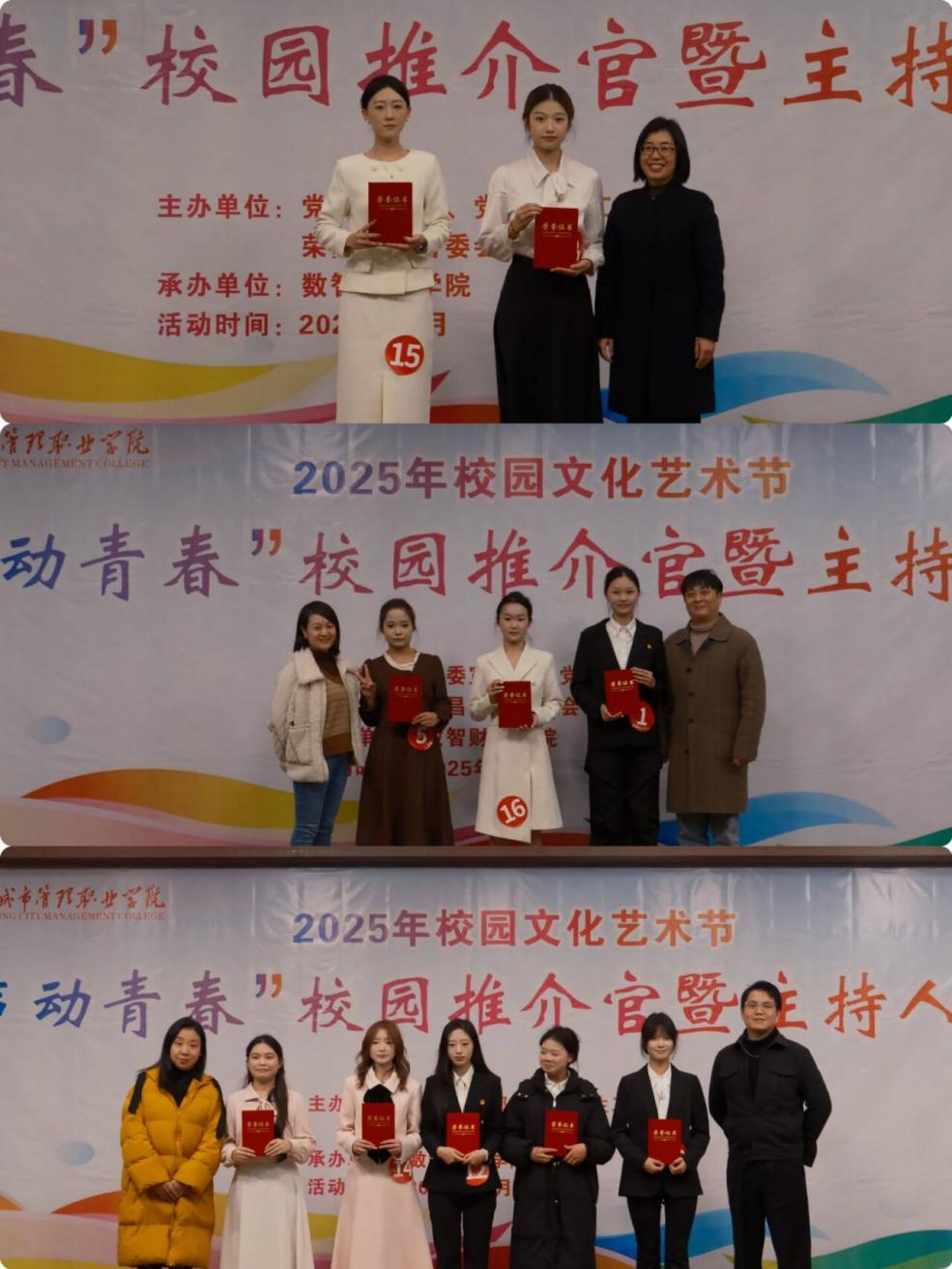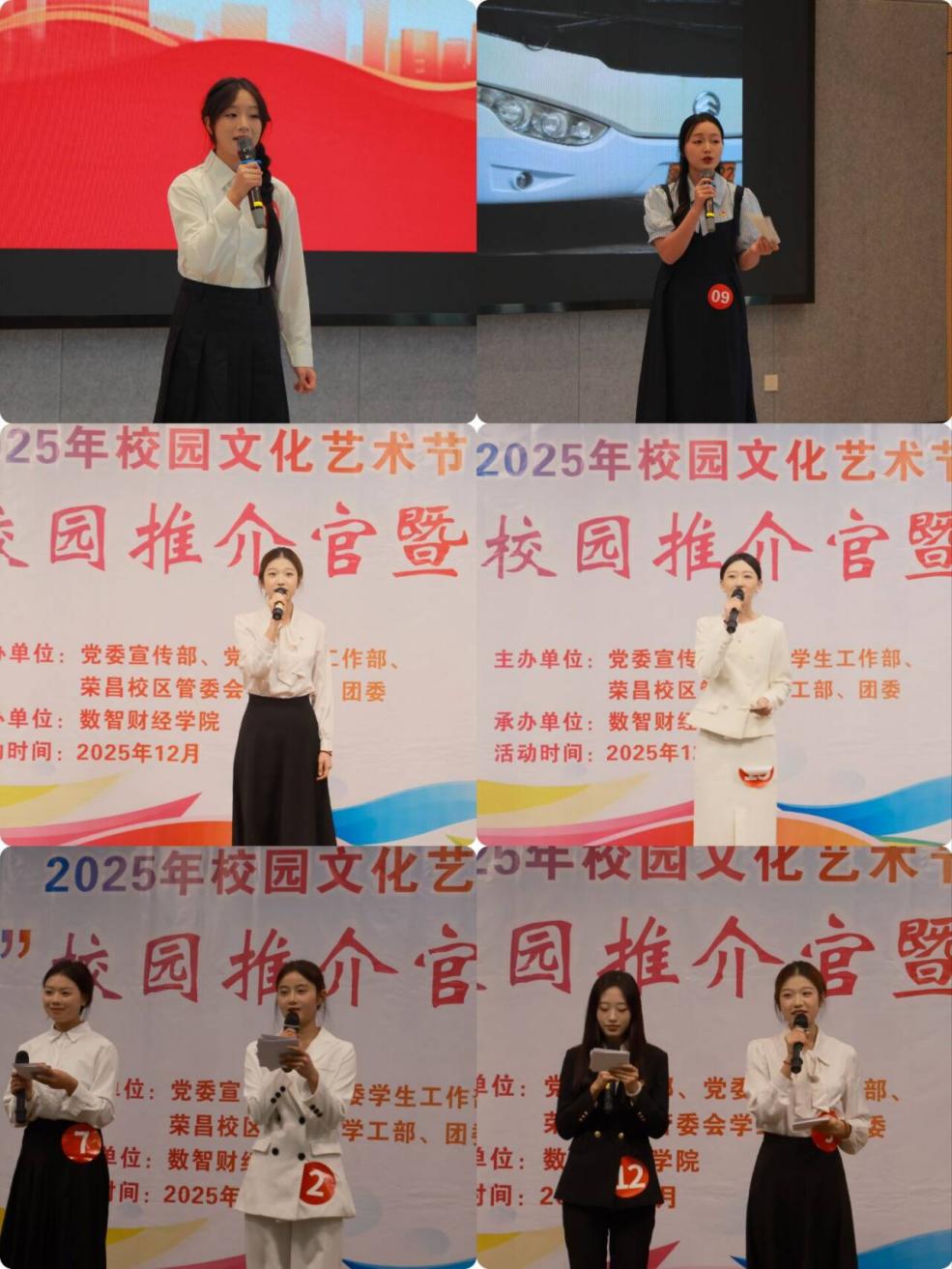 11月25日、12月3日,由党委宣传部、党委学生工作部、荣昌校区管委会学工部、校团委主办,数智财经学院承办的2025年校园文化艺术节“声动青春”校园推介官暨主持人大赛决赛成功举办。