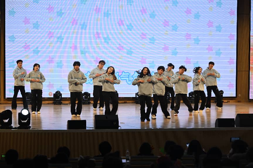 比赛现场灯光璀璨,气氛热烈。十支队伍依照抽签顺序轮番登场,各展风采。通识教育学院教师们带来的啦啦操表演《西蓝花》瞬间点燃全场,将气氛推向新的高潮。老师们的精彩演绎,也为在场同学上了一堂生动的实践课。