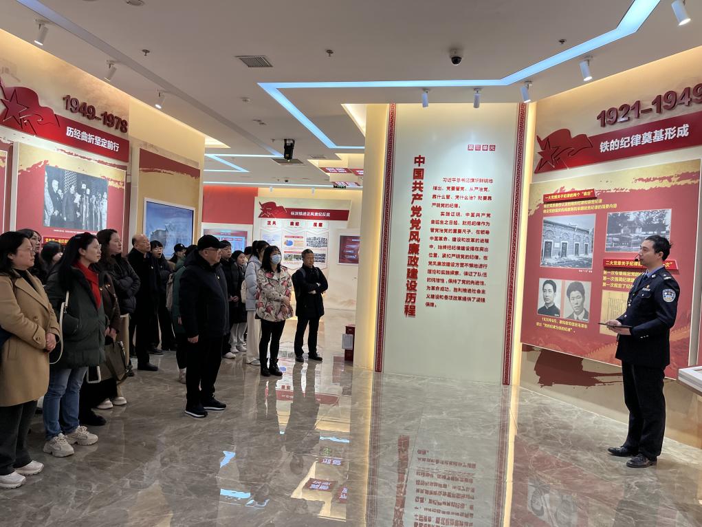 随后,在教育基地讲解员的引导下,全体人员依次参观了“时时忠诚核心、事事紧跟核心、处处维护核心、坚决捍卫核心”“新时代全面从严治党的历史性变革”“中国共产党党风廉政建设历程”“中国共产党在重庆的党风廉政建设历程”“中国监察制度及机构演变”“‘打虎拍蝇’典型案例”等主题单元展区,并在一楼多功能厅,观看了警示教育片。
