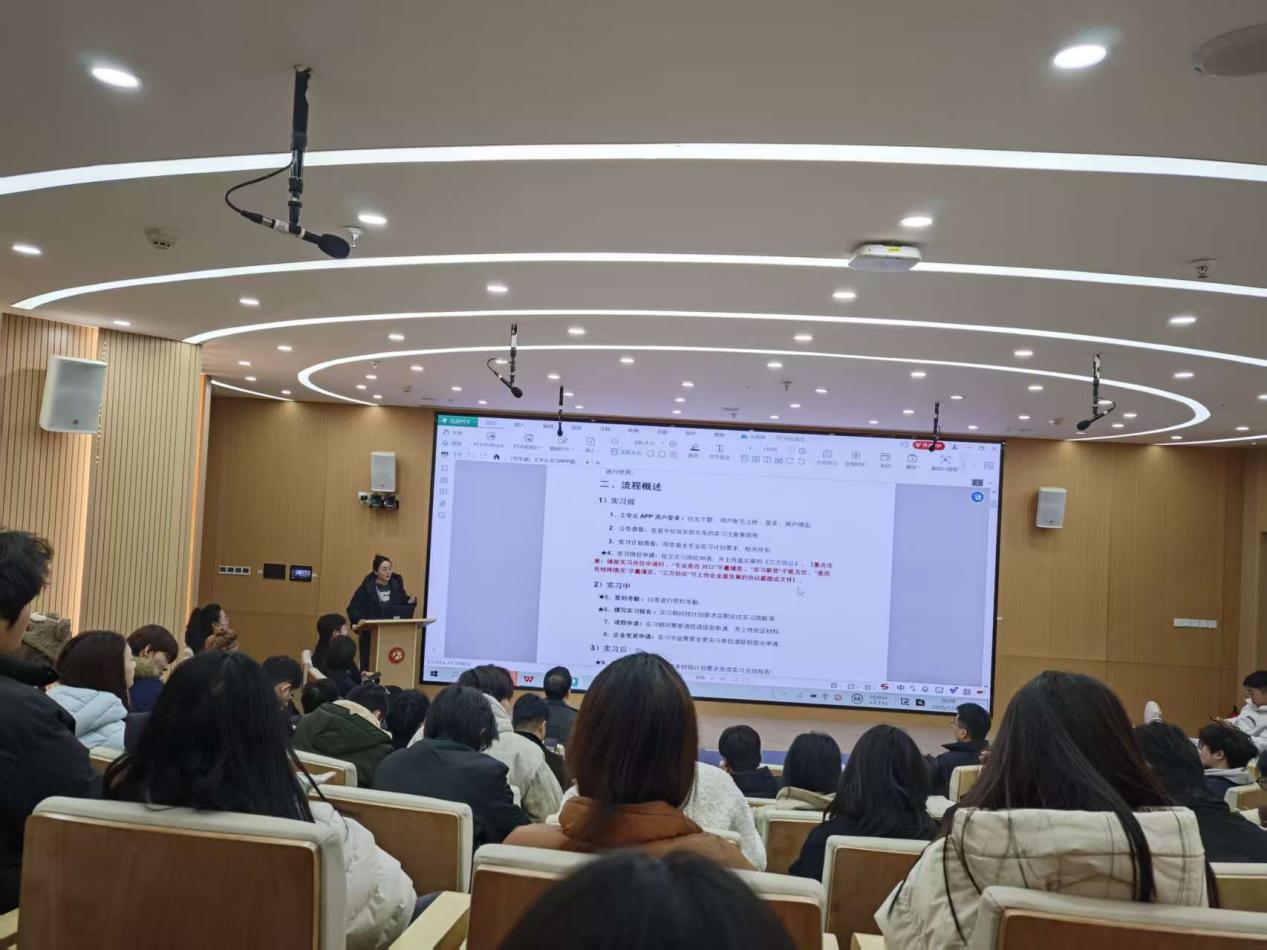 在实务部署环节,教研室主任曹楠解读了本次实习的整体安排、目标任务、过程管理、考核方式及材料提交要求,使学生对实习各环节形成清晰认知。