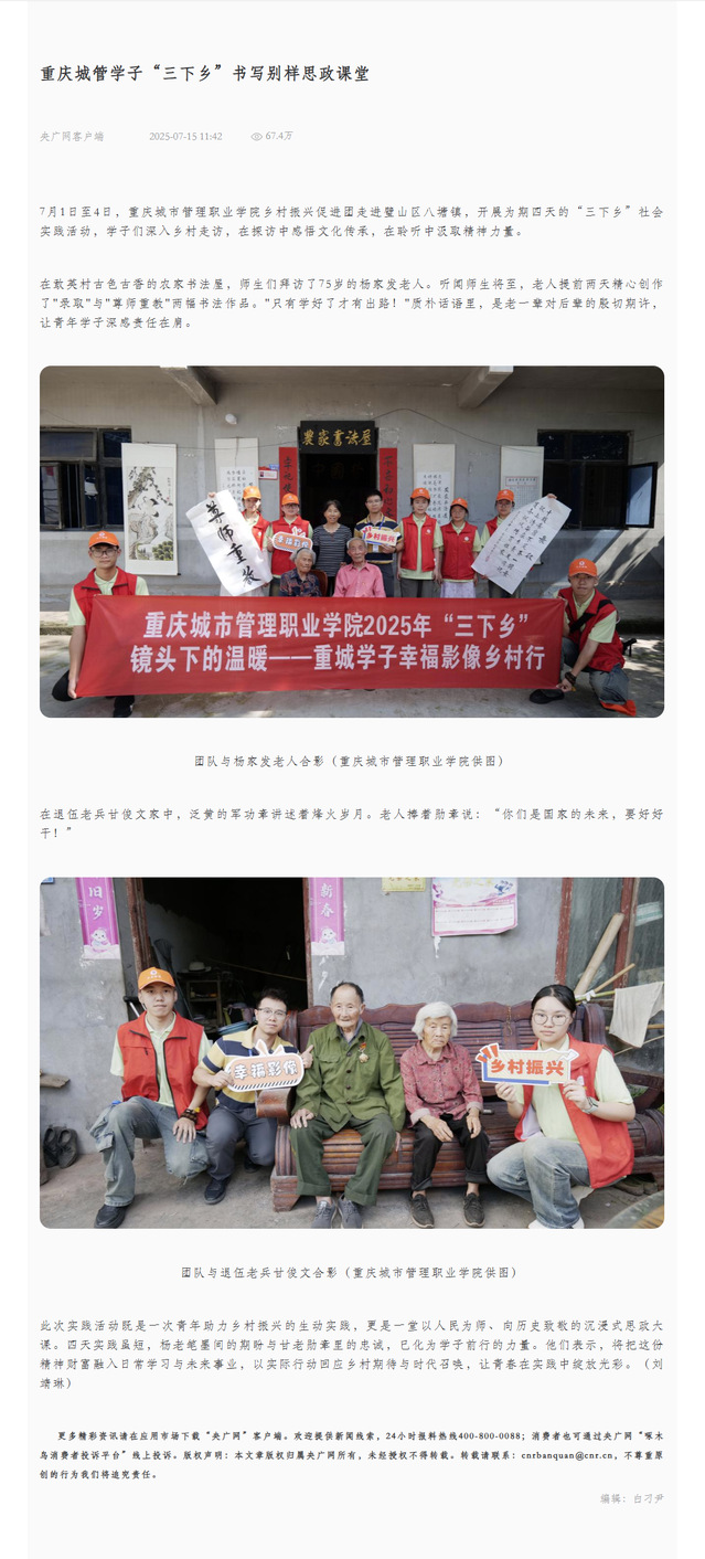 作者:智慧康养学院审核发布:重庆城市管理职业学院发布者:党委宣传网工部发布时间:2025-07-15浏览次数:10