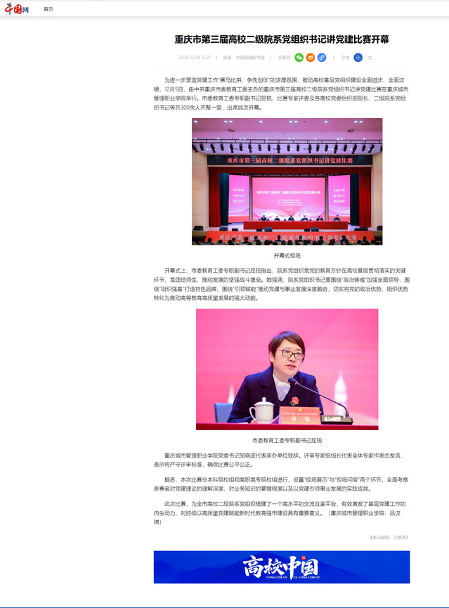 作者:党委宣传网工部审核发布:重庆城市管理职业学院发布者:党委宣传网工部发布时间:2025-12-05浏览次数:10