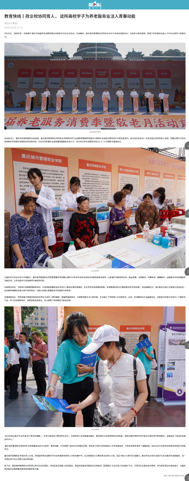 作者:智慧康养学院、党委宣传网工部审核发布:重庆城市管理职业学院发布者:党委宣传网工部发布时间:2025-09-29浏览次数:10