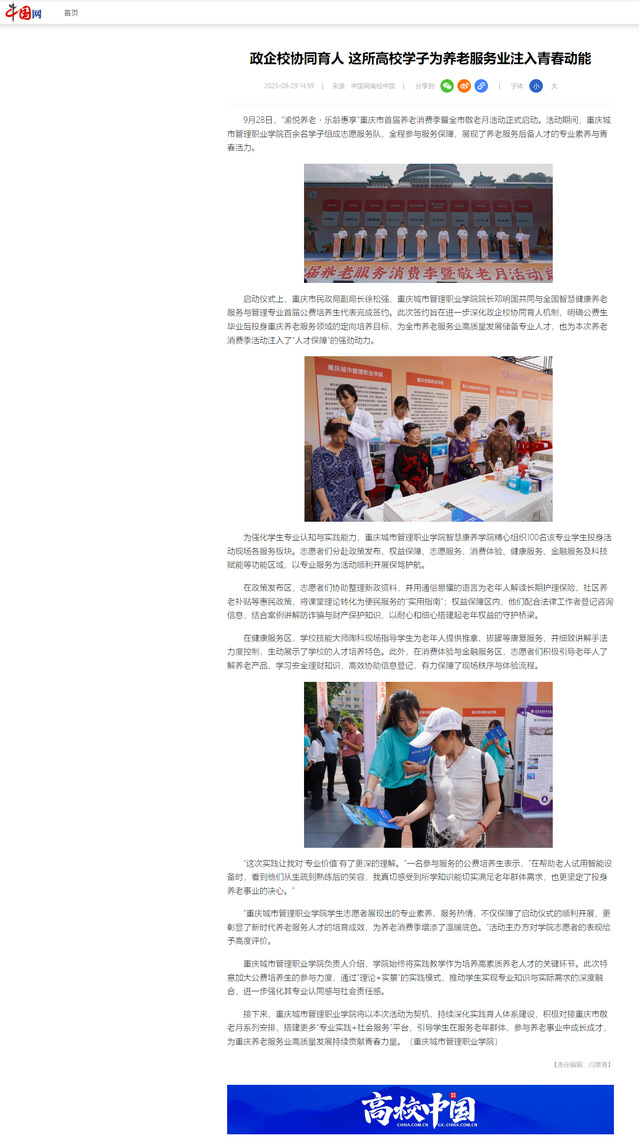 作者:智慧康养学院、党委宣传网工部审核发布:重庆城市管理职业学院发布者:党委宣传网工部发布时间:2025-09-29浏览次数:10