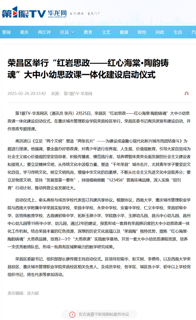 作者:荣昌学院审核发布:重庆城市管理职业学院发布者:党委宣传网工部发布时间:2025-02-26浏览次数:10