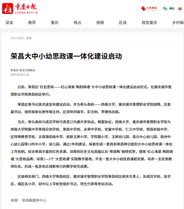 作者:荣昌学院审核发布:重庆城市管理职业学院发布者:党委宣传网工部发布时间:2025-03-04浏览次数:10