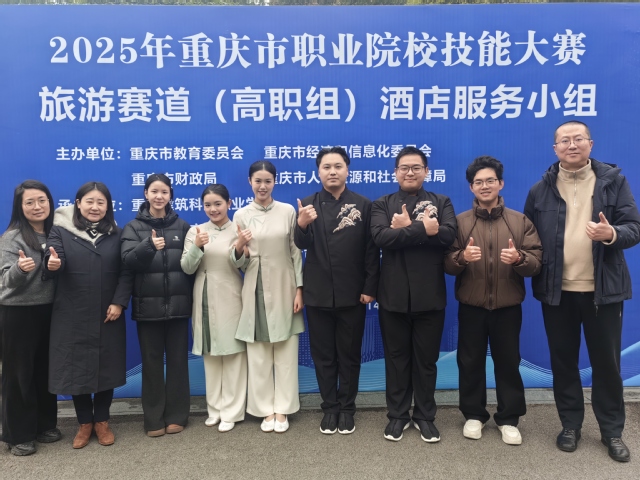 1月13-14日,2025年重庆市职业院校技能大赛旅游赛道(高职组)酒店服务赛项在重庆建筑科技职业学院举行,全市17支代表队共计67名选手参赛。经过激烈比拼,我校文化与旅游学院酒店服务参赛队获得铜奖。