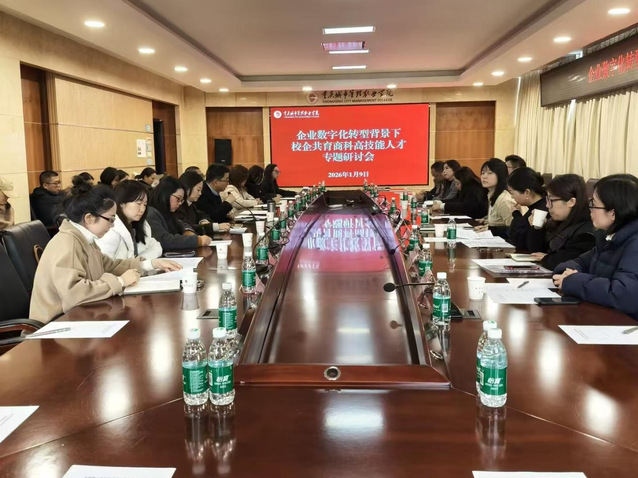 1月9日下午,由我校商学院主办的“企业数字化转型背景下校企共育商科高技能人才专题研讨会”在学校201会议室成功举行。中国连锁经营协会、麦当劳、永辉等多家行业企业代表以及重庆城市职业学院等5所院校二级学院负责人共同参会。会议由商学院党总支副书记牟艳红主持。