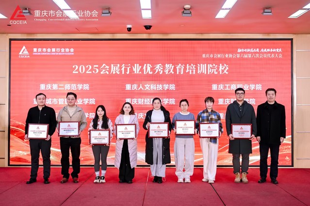 1月26日,重庆市会展行业协会第六届第六次会员代表大会暨2026新春团拜会于重庆南坪会展中心盛大举行。本次盛会汇聚了全市会展行业的精英人士、企业代表以及院校专家,以“融合创新高品质,会展服务新重庆”为主题,对2025年度行业发展成果进行了总结,对先进典型予以表彰,并围绕成渝地区双城经济圈会展产业协同发展展开了深入研讨。重庆城市管理职业学院因在会展人才培养领域作出的突出贡献,荣获“2025会展行业优秀教育培训院校”称号。