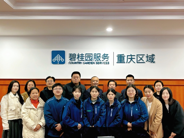 为进一步推进产教融合、校企合作,促进毕业生高质量就业,了解2023级学生岗位实习情况,不断提升人才培养质量,3月18日,民政与社会治理学院副院长李飞虎,教务处实训科、现代物业管理专业等相关教师及辅导员共6人,前往碧桂园生活服务集团股份有限公司重庆分公司访企拓岗和看望岗位实习学生。公司重庆区域运营总经理刘柯、人力资源总经理钟光龙、运营总监罗娇、人力资源副总监勾忆和5名现代物业管理专业实习学生参加了交流座谈会。