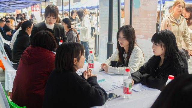 重庆合展养老产业发展有限公司董事长郭彬也来到双选会现场。他表示当前大健康产业需求旺盛,此次双选会搭建了优质校企对接平台,学校学子专业基础扎实、与行业需求高度契合。下一步,企业计划与学校共建学徒制培养项目,进一步深化校企合作,携手培养大健康复合型人才,助力重庆大健康产业提质升级。