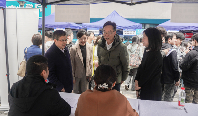 学校党委书记邹晓波、校长邓明国,副校长刘幼昕、周毅,重庆市养老服务协会会长郭小忠,学校学生处处长、产教融合中心主任等相关部门负责人到现场指导,详细了解企业用人需求与学生求职情况。邹晓波表示:“本次专场双选会是我校落实国家就业部署、深化产教融合的具体实践,聚焦大健康全领域需求,助力相关专业学子精准就业,以教育之力赋能产业发展,践行高校服务国家战略的责任。”