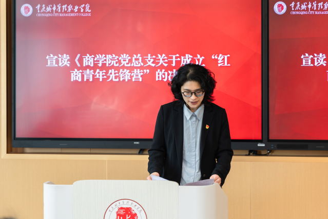 商学院荣昌校区管理办公室负责人汤茹薇宣读《商学院党总支关于成立“红商青年先锋营”的决定》,明确先锋营的定位与使命:打造以红岩铸魂、专业赋能、实践践行于一体的青年成长平台,培育“政治好、业务精、作风实”的新时代“红商先锋”。