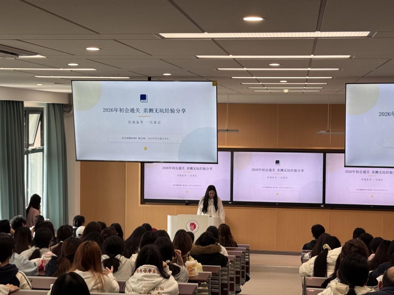 本次讲座由数智财经学院主办、会计协会承办,邀请学院专任教师杨琼宇、高级会计师钱红担任主讲嘉宾,并邀请已通过初级会计资格考试的陈久静、林云凤两位同学分享备考经验。
