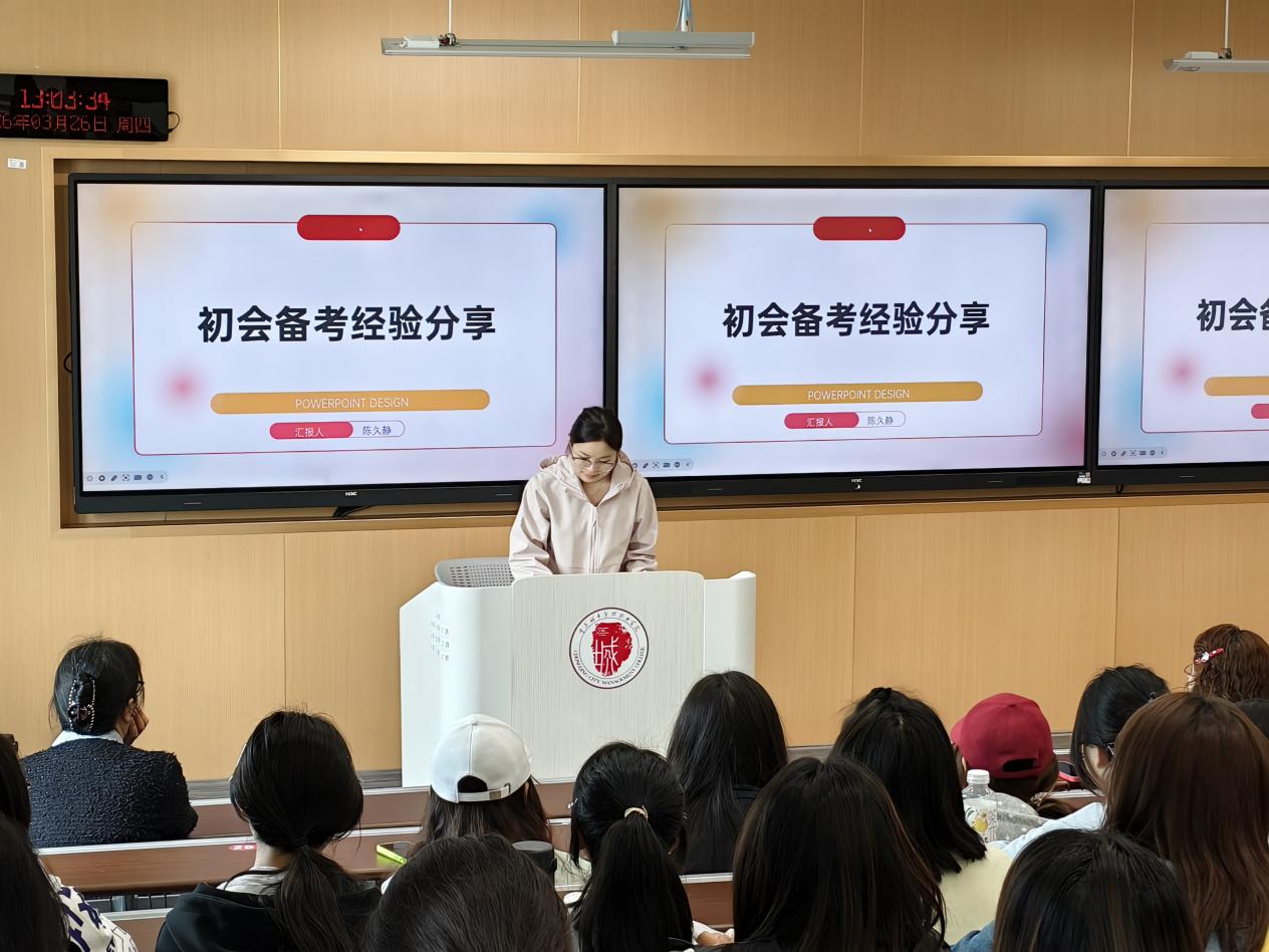在学生经验分享环节,已通过初会考试的陈久静、林云凤两位同学依次上台交流。陈久静同学从学习方法、做题技巧、复习策略、心态调整等方面分享备考心得;林云凤同学则结合自身经历,详细讲解备考资料选择、学习计划制订、学习效率提升等实用内容,为在场同学提供了可借鉴的备考路径。