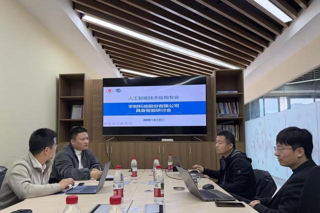 为抢抓具身智能技术发展机遇,深化产教融合、校企合作,助力职教升本与新工科建设,4月3日,大数据与信息产业学院与宇树科技股份有限公司联合举办人工智能技术应用专业具身智能研讨会。学院副院长梅青平、专业负责人丁允超及相关教师,宇树科技股份有限公司职业教育区域总监胡欣煜等参加研讨活动。