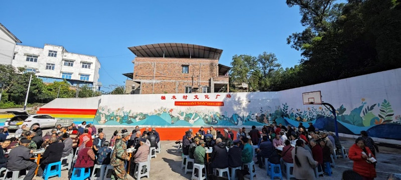 10月28日,在焕然一新的楠木村文化广场上,近300名老年村民和家属欢聚一堂,集体庆祝重阳节。活动由楠木村驻村工作队和楠木村村委共同承办,学校智慧康养学院教师、重庆市派驻丰都县楠木村驻村第一书记陶学梅主持了庆祝活动。活动现场气氛热烈祥和,老人们吃着蛋糕观看村内的舞蹈队表演,更有80高龄的老人们自告奋勇上台演奏二胡、演唱革命老歌。会后 ,为老人们发放了蛋糕礼盒、淘菜盆等物品 。