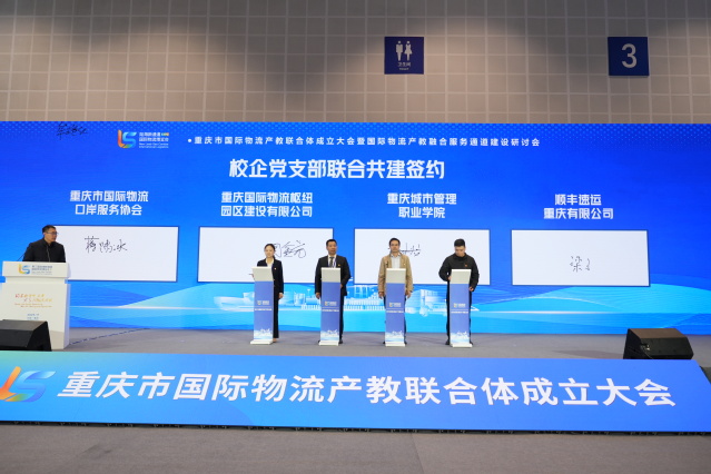 最后,重庆市国际物流口岸服务协会、重庆国际物流枢纽园区建设有限公司、重庆城市管理职业学院、顺丰速运重庆有限公司还进行了校企党支部联合共建签约。通过党建统领高质量发展,不断强化校企基层党组织的政治功能、组织功能和服务功能,共同推动党建工作与教育教学、企业生产经营深度融合。