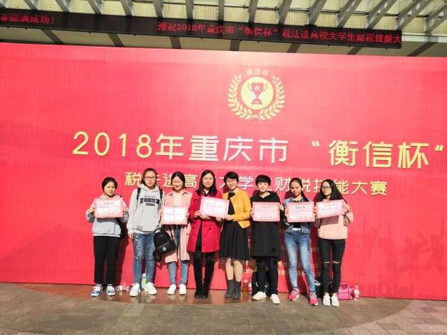 2018年11月3日,“2018年重庆市’衡信杯’税法进高校大学财税技能大赛”在重庆工商大学举行。本届大赛由重庆市高等教育学会、重庆市税务学会、重庆市高等职业技术教育研究会联合主办,重庆市高等教育学会财经教育专业委员会和重庆工商大学承办。大赛分为本科组和高职组,来自重庆理工大学、重庆工商大学、重庆师范大学、西南政法大学等14所本科院校的25支本科队伍,以及来自重庆城市管理职业学院、重庆财经职业学院、重庆电子工程职业学院、重庆工程职业技术学院等22所高职院校的43支高职参赛队伍参加了此次比赛。