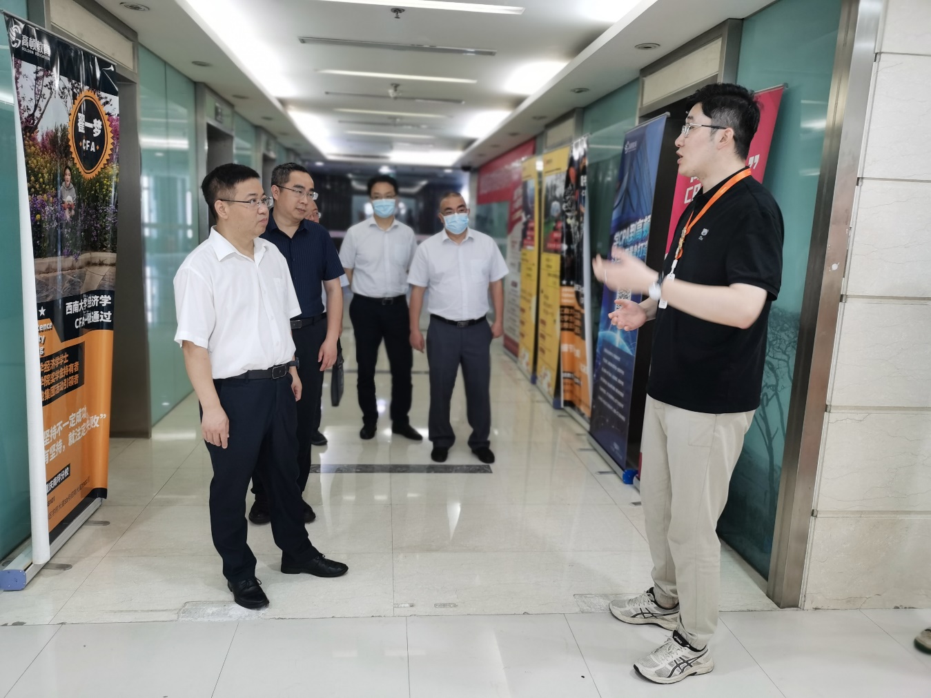 为深入贯彻落实党中央、国务院、市政府“稳就业,保民生”工作决策部署,积极响应教育部办公厅“高校书记校长访企拓岗促就业”专项行动要求。6月24日,学校党委副书记、校长邓明国、副校长周毅、产教融合中心江柯、大数据与信息产业学院院长翁代云、数智财经学院党总支书记蒋家宁、数智财经学院副院长(主持工作)黄菊英、数智财经学院校企合作专员王颖等一行到上海高顿教育科技有限公司重庆分公司走访调研。