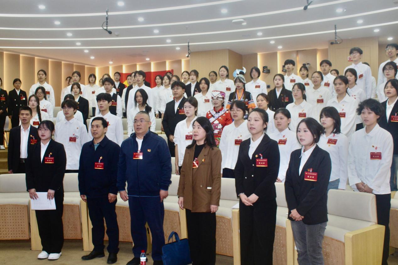 大会在庄严的国歌声中正式开幕。校团委学生会主席团成员蒋艾玲同学宣读校团委《关于同意召开数智财经学院第九次学生代表大会的批复》。