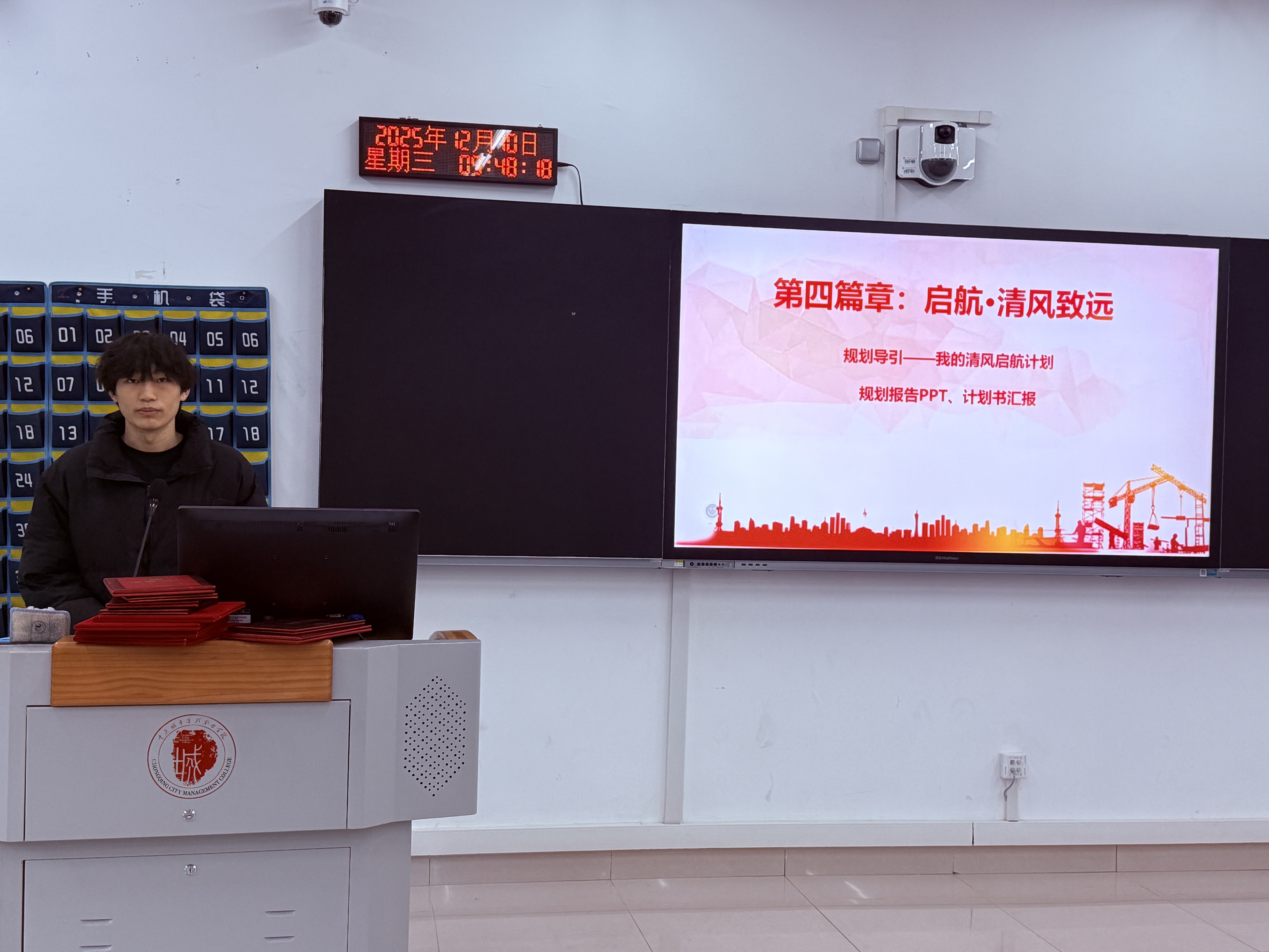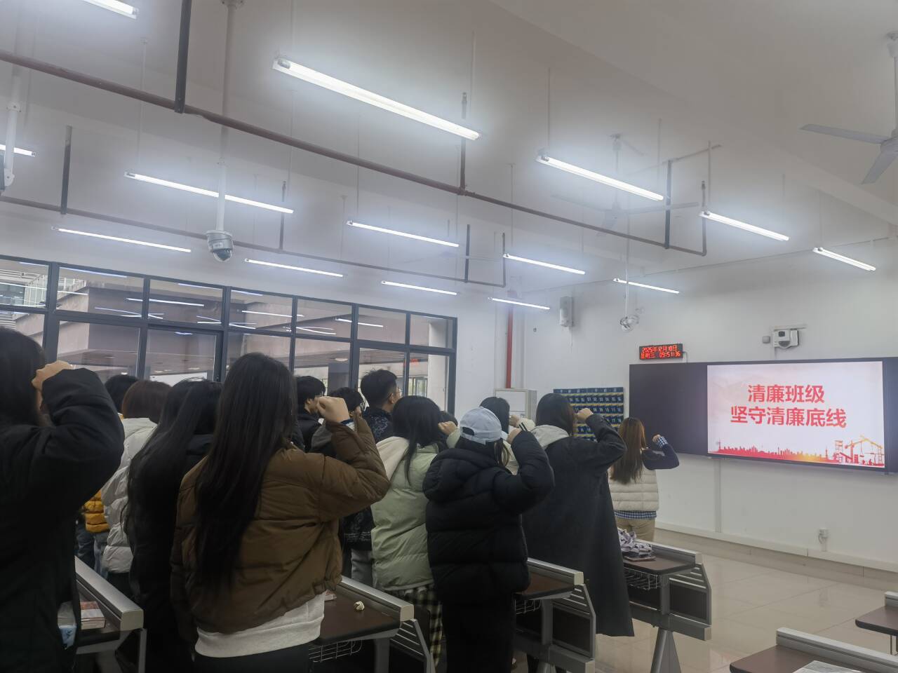 为深化清廉班级建设成果,强化学生廉洁从业意识,引导同学们在步入实习岗位之际筑牢思想防线,我院清廉班级财务A2302班于12月10日在致用楼C101举办“清心筑梦,风正扬帆——清廉班级创建总结暨岗位实习清风启航”主题活动。班级全体同学、辅导员老师、院系学生会骨干共同参与了本次活动。